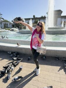 Noi am ajuns aici innaintea pranzului insa cel mai bun moment pentru astfel de fotografii este in amurg. Te poti bucua si noaptea de un adevarat spectacol pentru ca fantana este luminata, dar pentru fotografiile alaturi de porumbei trebuie sa iei in calcul doar vizita in timul zilei.